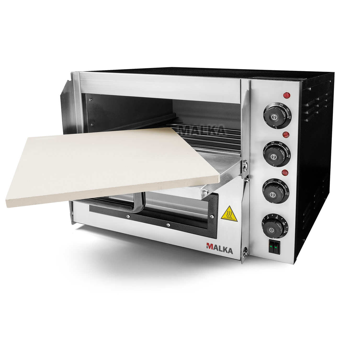 Experimenta la excelencia en la preparación de pizzas con nuestro horno profesional de doble cámara, diseñado específicamente para atender a las demandas de locales de comida rápida, restaurantes italianos y pizzerías con espacio limitado en sus cocinas. Este innovador horno te permite cocinar dos pizzas de hasta 38 cm de diámetro cada una al mismo tiempo, garantizando una cocción perfecta gracias a su base de piedra refractaria de alta calidad. Si sólo necesitas cocinar una pizza a la vez, considera también este horno de una cámara Malka HPS11.